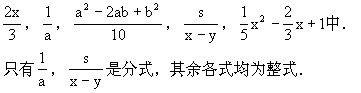 中,B中必须含有字母,这就是区别整式与分式的关键,如在式子