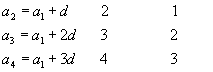 至此,大多数学生发现了d的系数=序号-1。至于有没有必要建立通项公式,学生没有自己的体会.可要求学生填空:![]()