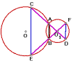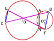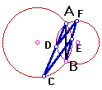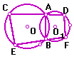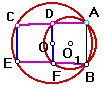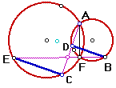 例如,初三几何中,⊙O和⊙O1都经过A、B两点。经过点A 的直线CD与⊙O相交于C,与交⊙O1于D,经过点B的直线FE与⊙O交于点E,与⊙O1交于点F。 求证:CE∥DF。课本指定本题的图形如图9,按照此图,∠C=∠ABF=180°-∠D,便可得证。作为本例的教学到此可以结束。而从发散思维来考虑,按照题目的叙述,可以演绎成不同的图(如图10、11、12、13、14、15),进一步考虑上面的证法是否适用于每一个图,应该怎样证明。因选用了几何画板,只要根据所需 图9 图10拖动点C、D、E、F,或者推拉⊙O或⊙O1,便可生成下述各图。这几种情形的证明在本质上是一致的。