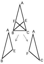 在复杂图形中,如何将目标图形从背景中分离出来是识图的重要一步。如图2,求证等腰三角形两个底角的平分线相等。使用投影片的抽拉或几何画板中的运动功能把ΔABE和ΔACF(或ΔBCE和ΔCBF)从ΔABC中分离出来,同学就一下子认清了图形的相互位置关系,明确了证题的方向,顺利地找到了对应边和对应角,从全等得到BE=CF。再比如在讲圆幂定理时,用几何画板测量AP、BP、CP、DP的长度,并计算AP·BP、CP·DP的值,拖动P点(如图3)。随着P点的变动,学生会观察到上述各数据在不断地变化,但AP·BP 与CP·DP 的值总是相等的。当P在圆内时,反映了相交弦定理AP·BP=CP·DP ,当P在圆外时,就是割线定理AP·BP =CP·DP。对于处在割线的状态,击“运动A→B”按钮,点B靠近直至重合,AP=BP 。这时反映的刚好是切割线定理。多媒体使数形结合成为举手之劳。这里不但使学生能探索到圆幂定理的有关结论,也能体会到圆幂定理之间的内在联系。
