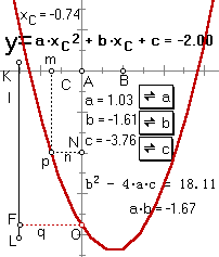 轴交点及函数增减性。通过图形的变化过程,直观、准确地描述了二次函数中数形之间的对应性。由于动画的可持续反复,程度低一些的同学也能较好地领悟。复杂的关系在这里得到有条不紊地充分展示,多么优美的抛物线!几何画板因抛物线的演示而达到了完美。