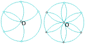 在省编初一数学§4.6“圆规的使用”中要求画出 如图所示的花瓣,教学中可以采用几何画板中的“显示/隐藏”功能,制作显示序列,根据画图的步骤逐步显示作图过程(如图5),并及时指明画图要点,便使得教学过程显得层次井然,要领得当。学生心领神会,很快地画出了图形,按要求涂上了颜色。一幅美丽的图案就诞生了。接着映出图6让同学观察画法,并请同学课后发挥自己的创造力,用圆规画一个漂亮图案,并根据自己爱好添上颜色,大家比一比。经过这一过程,同学们就个个摩拳擦掌,跃跃欲试了。这一方法同样适用于三角形奠基法作梯形,以及长方体、立方体等的作图教学。