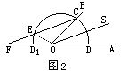 2)在直尺一边上划上E、F两点,使EF=r,然后绕点C滑动直尺的位置,使直尺上E、F两点分别落在半圆和AO的延长线上,在此位置上作直线CEF.