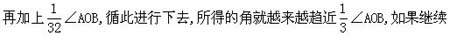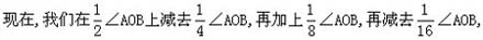 作法二 作一个角的平分线,这是一个尺规作图可能问题(见例1).因而可用尺规把一个已知角四等分,八等分,十六等分,……,2n等分(n是正整数).