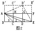 显然只需证∠1+∠2=45°,如何将∠1与∠2放在一起是本题的关键,我们以AF为对称轴,作三个正方形的对称图形AB'C'D'E'F,如图2,连结AD'、D'E,易见∠2=∠E'ED.因此只需证∠D'EA=45°,事实上,由Rt△AB'D'≌Rt△D'E'E.可知 AD'=D'E,且∠AD'B'+∠ED'E'90°,从而有∠AD'E=90°,即△AD'E是等腰直角三角形,因此∠D'EA=45°成立.