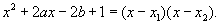 为两根的二次方程。