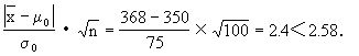 某公社种植的小麦,根据往年生产情况,平均每亩产量为μ0=350斤,标准差为σ0=75斤.今年,该公社引进新的小麦品种,试种了100亩,在田间管理大致相同的情况下,其平均亩产量为x=368斤,能否认为该品种可以推广呢?