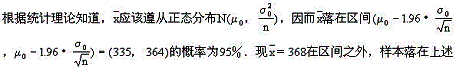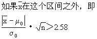 种与原品种有显著性差异.其标准是在区间(335,364)外的概率只有5%,数值5%叫做显著性水平,通常用α表示,上述判断就是在α=5%下作出的.显著性水平变了,判断也可能随着改变,例如,取α=1%,u0.01=2.58,因而将上述区间的1.96换成2.53.这时,区间变为