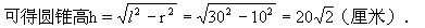 [例1] 将半径为30厘米的薄铁圆板沿三条半径截成全等的三个扇形,做成三个圆锥筒(无底).求圆锥筒的高(不计接头).