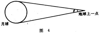 另一种测定月球直径大小的方法,需要观测月球对地球上一点所张的视角θ(如图4)。