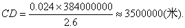 把AB=0.024米,OF=384000000米,OE=2.6米代入,得