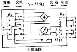 (2)测交、直流电流时,选择适当的分流器和表头相并联,接入在两接线柱之间.测交、直流电压时,需选用适当的倍压器并和表头相串联,连接在其中一个接线柱上.