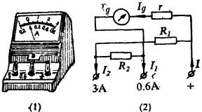 直流安培表表头结构采用磁电式,它的外形如图(l)所示,内部线路如图(2)所示.
