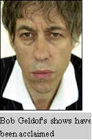 Sir Bob Geldof, thin and scraggly, dashes into an Italian cafe in Chelsea. It is Friday morning at 10. He's in three-quarter length cotton trousers, floppy espadrilles, a blue short-sleeved shirt and dark glasses that don't readily come off.