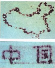 用扫描隧道显微镜在高定向裂解石墨表面上刻写的汉?quot;中国",其中笔画的线条宽度为10nm。如果用这样大小的汉字来书写《红楼梦》一书,只需大头针针头那样小的面积,就可写进全书的内容。
